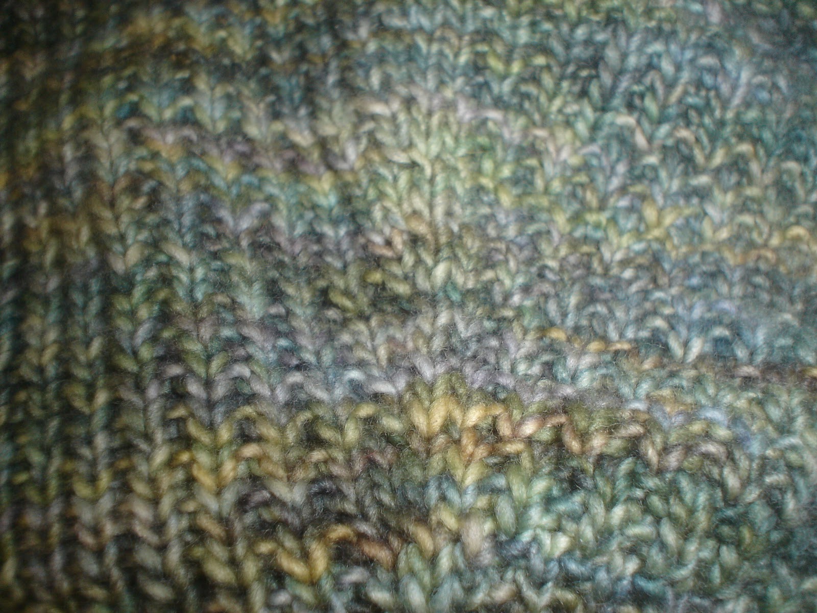 Over the weekend, I was contacted by Stephen West regarding errata in the Lakedale Shawl pattern from Malabrigo Book 3 - as you can see, one side of this scarf is in broken rib, and one side is in seed stitch rib. Apparently there were some pattern repeats missing from the book (the book has a 4-row repeat, but it should really be an 8-row repeat), causing the entire pattern to be in broken rib (I think I messed up an increase or two early on, resulting in the harlequin effect which is probably not evident in the squonchy* photo to the right). Since this scarf is just for me, and I wasn't entirely sure it wasn't my operator error, I decided to press on instead of frog and begin again - plus, part of me was also curious whether or not I would have the correct stitch count by the time I reached the colorwork scallops. Somehow I did, but instead of having 115 stitches on either side of the stitch markers, I had 116 stitches on the side with the seed stitch rib and 114 stitches on the side with the broken rib. Go figure!